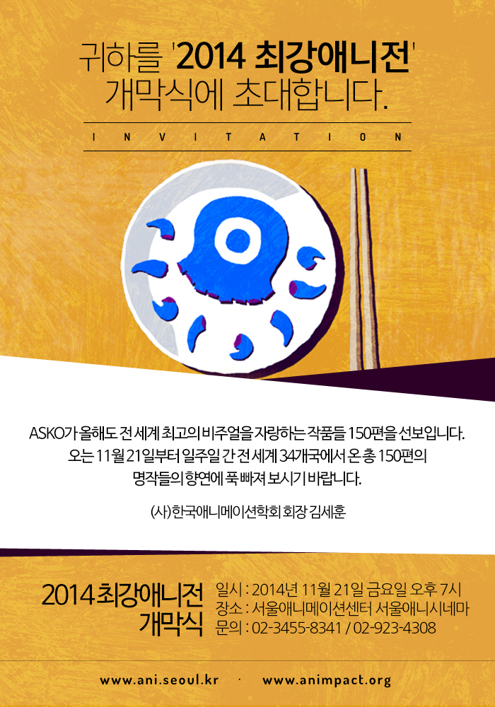 - 세계 10대 애니메이션영화제 2014년도 수상작 및 초청작 상영, 워크숍, 특강 등 개최