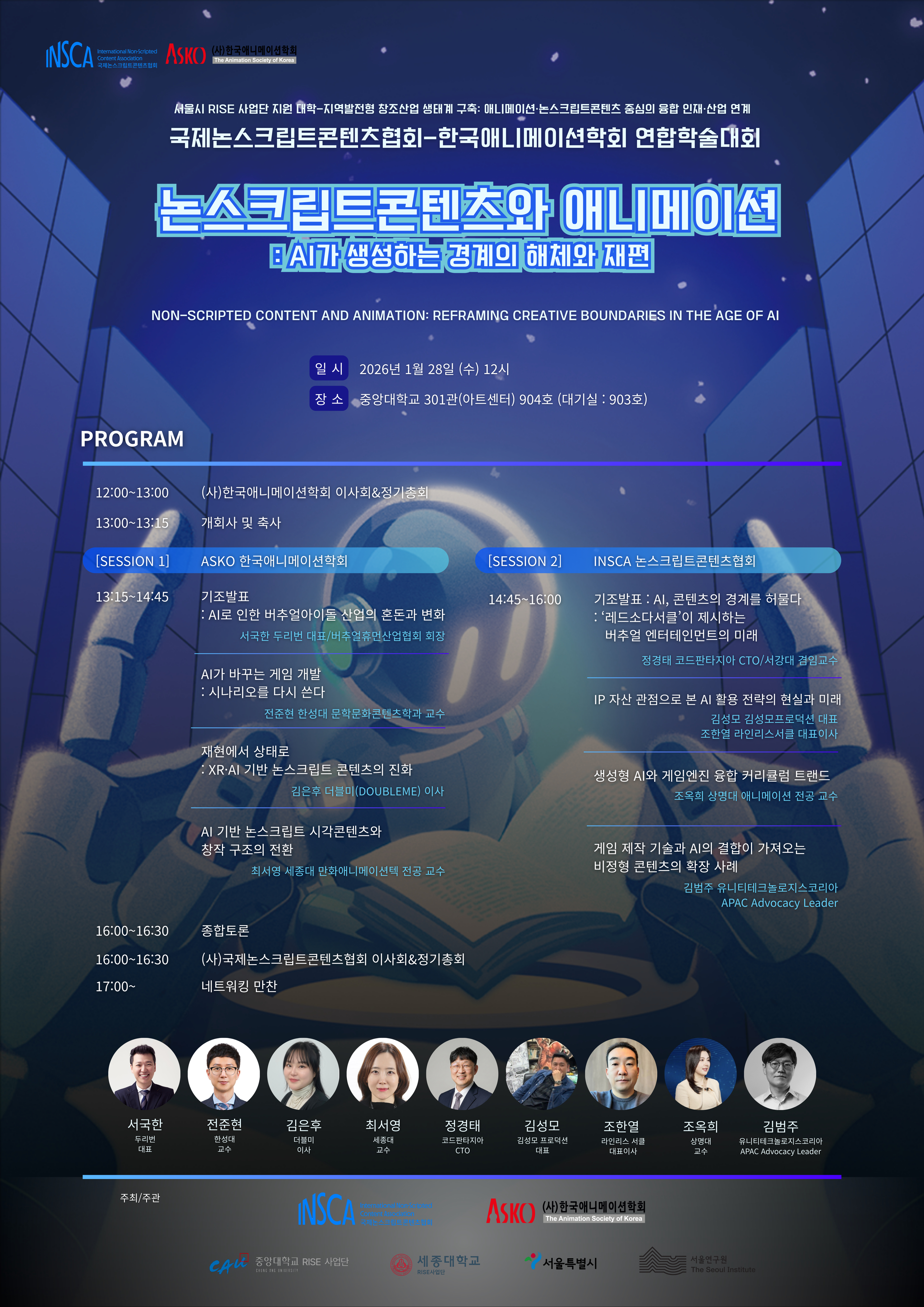2026 국제논스크립트콘텐츠협회-한국애니메이션학회 연합학술대회 개최 안내