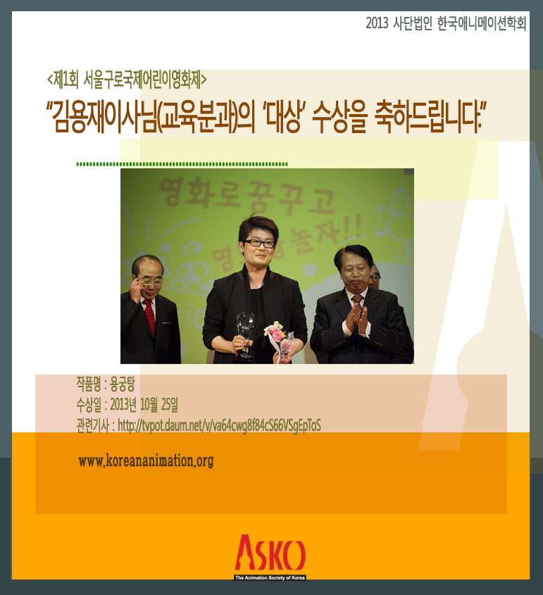 김용재이사님의 <제1회 서울구로국제어린이영화제> 대상 수상을 축하드립니다.
