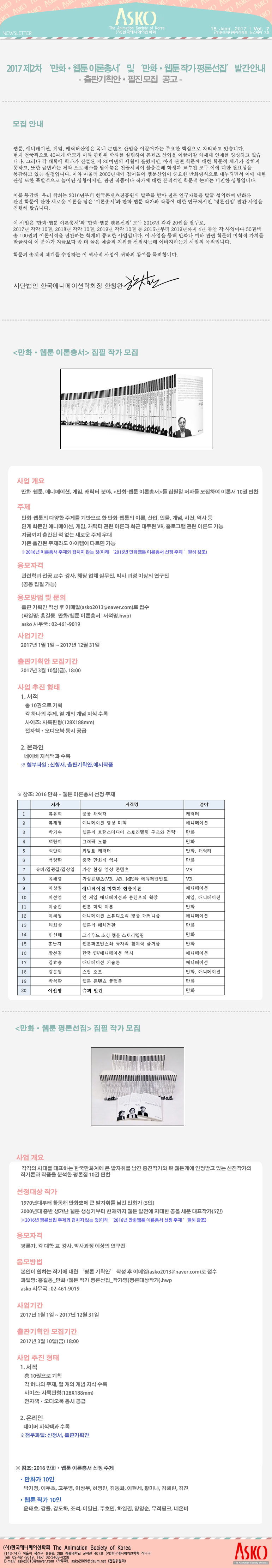 2017 제2차 '만화/ 웹툰 이론총서', '만화/웹툰 작가 평론선집' 필진 모집 공고