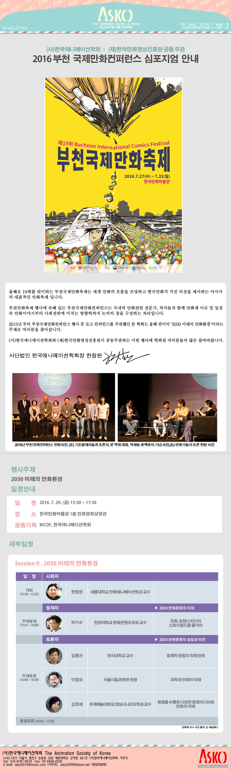 2016 부천 국제만화컨퍼런스 심포지엄 개최 안내