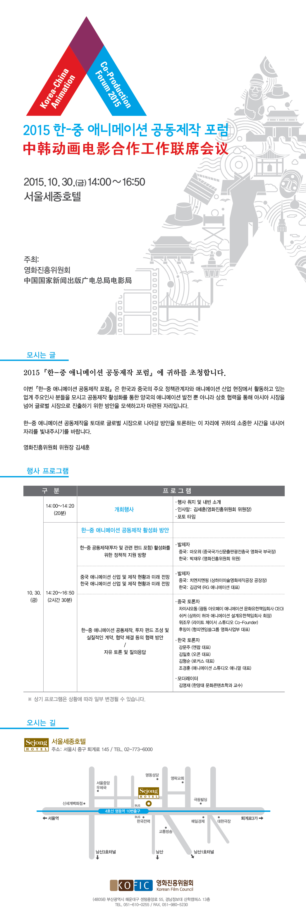 행사명 : 2015 한-중 애니메이션 공동제작 포럼