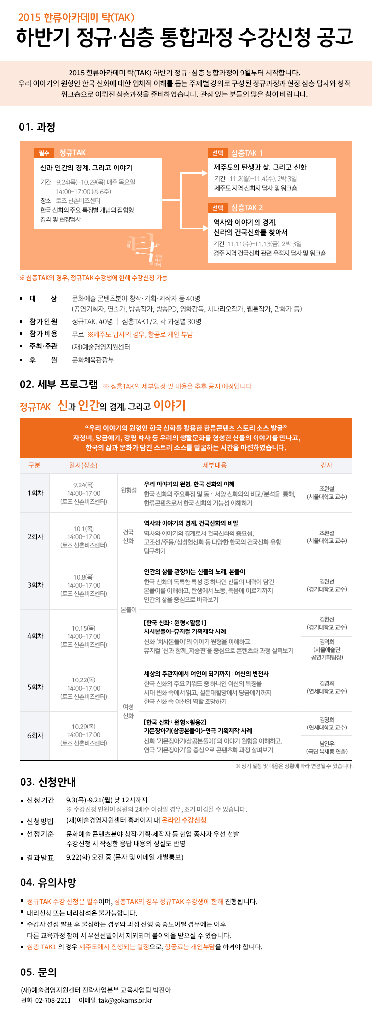 신청방법: (재)예술경영지원센터 홈페이지 내 온라인 수강신청